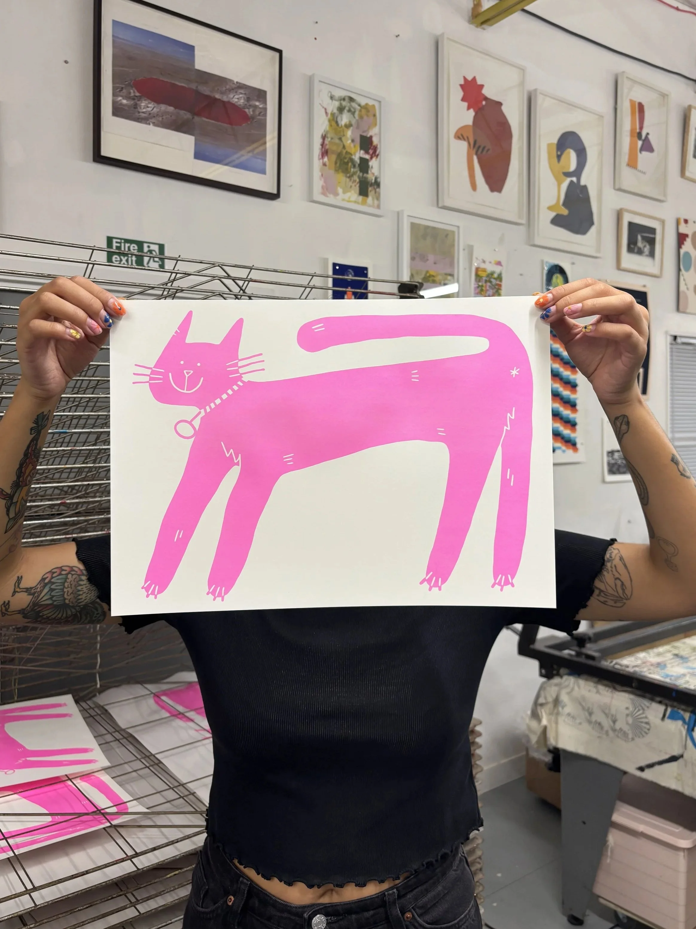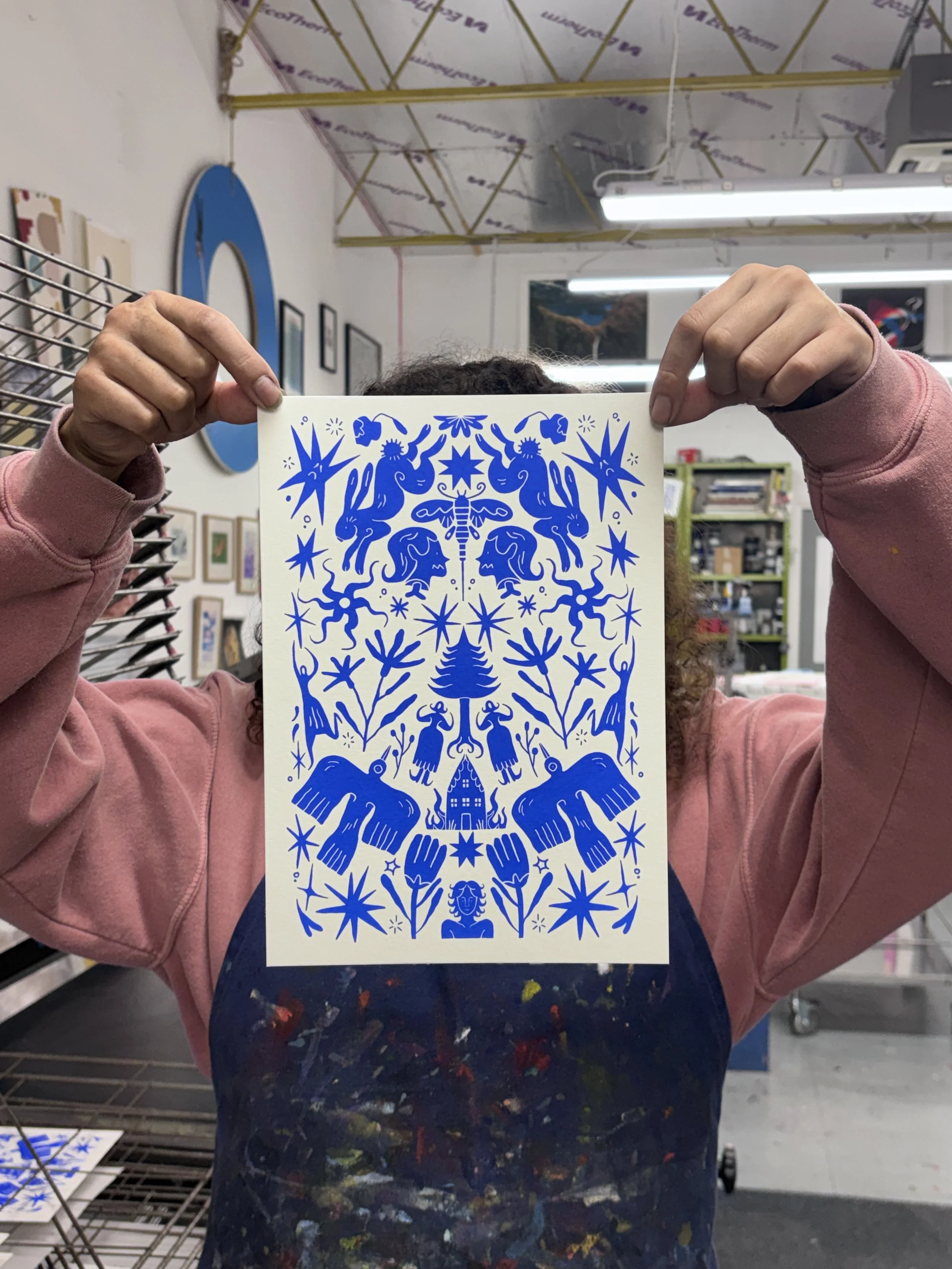 Besides my usual preferred media, I have been re-exploring printmaking. As a member at Sonsoles Print Studio, I have been able to rediscover screenprinting as a medium and practice.
